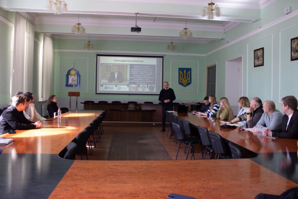 11 березня 2025 р. у Кам’янець-Подільському національному університеті імені Івана Огієнка відбулася гостьова лекція «Актуальні питання науково-педагогічної роботи в сучасному закладі вищої освіти», яку провів проректор з науково-педагогічної роботи та міжнародних зв’язків, к.п.н., доцент Геннадій Бесарабчук.